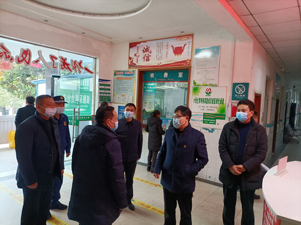 蔡和林一行来到东沟镇卫生院,详细了解疫情防控措施各项落实情况,听取了卫生院关于医护人员及设备配备、诊疗处置流程、医疗物资储备及近期接诊情况等工作汇报。