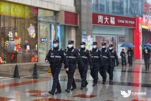 1月28日上午,东西湖区公安分局巡警大队在辖区重点商圈、场所开展训练,随时做好雨雪冰冻天气的应急处置工作。