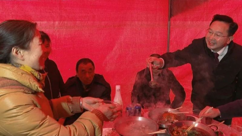 中午时分,在临时搭建的餐厅里,余峰与十多户被征收居民围坐一堂,吃了一顿特殊的团年宴。饭桌上,大家唠家常、话团圆、谈发展,处处洋溢着其乐融融的年味儿。