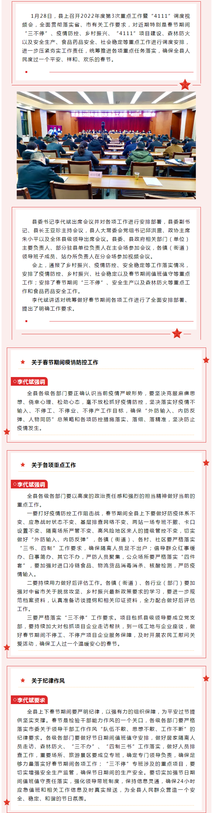 县上召开2022年度第3次重点工作暨“4111”调度会
