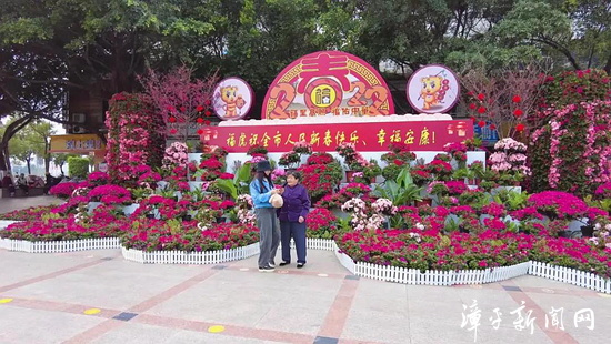 这天,记者在市政府门前广场看到,以“福虎迎春”为主题的花坛由杜鹃花、樱花、山茶花等组合而成,在各种鲜花的交相映衬下,更加凸显了节日的气息,路过的市民纷纷拍照留念。
