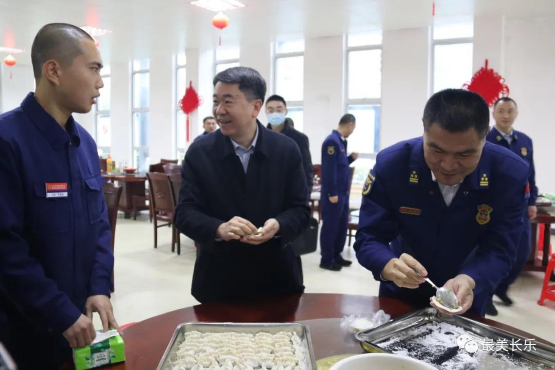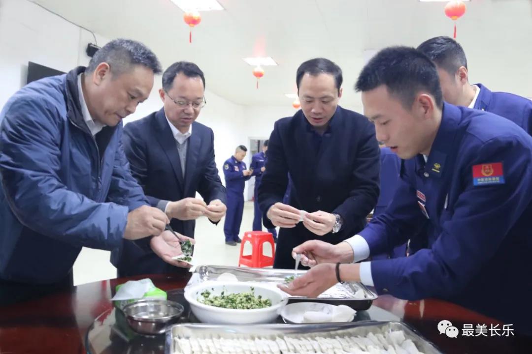 1月29日(农历十二月廿七),新春佳节来临之际,何杰民、廖海军、赵峰、陈增国等区四套班子领导来到区消防救援大队,看望慰问消防救援人员,并与他们一起包饺子、共吃饭、同联欢,共度佳节。区领导陈焱参加活动。