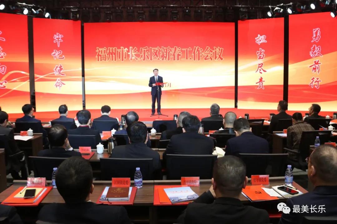 1月29日,长乐区2022年新春工作会议召开。何杰民、廖海军、赵峰、陈增国等区四套班子领导参加会议。区委副书记陈禺主持会议。