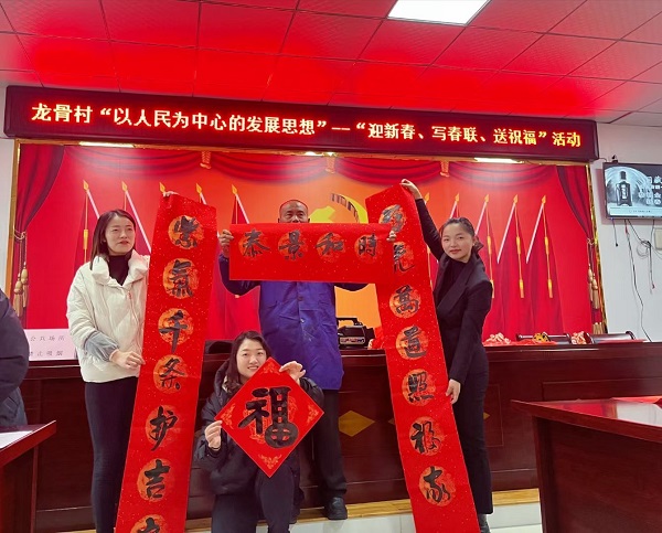 新春将至,为弘扬中华优秀传统文化,营造欢乐祥和的节日氛围。1月26日农历小年,河棚镇龙骨村开展了主题为“以人民为中心的发展思想”的“迎新春、写春联、送祝福”活动,为广大村民送上新年的美好祝福。