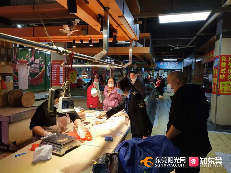 东莞阳光网2月7日讯 春节期间,东莞市市场监管局针对疫情防控形势和节日消费特点,强化农贸市场、冷库、餐馆、药店、景区等重点场所的监督检查,做好常态化疫情防控工作,持续夯实节日期间市场监管领域疫情防控防线和市场安全底线,全力守护人民群众平安过春节。