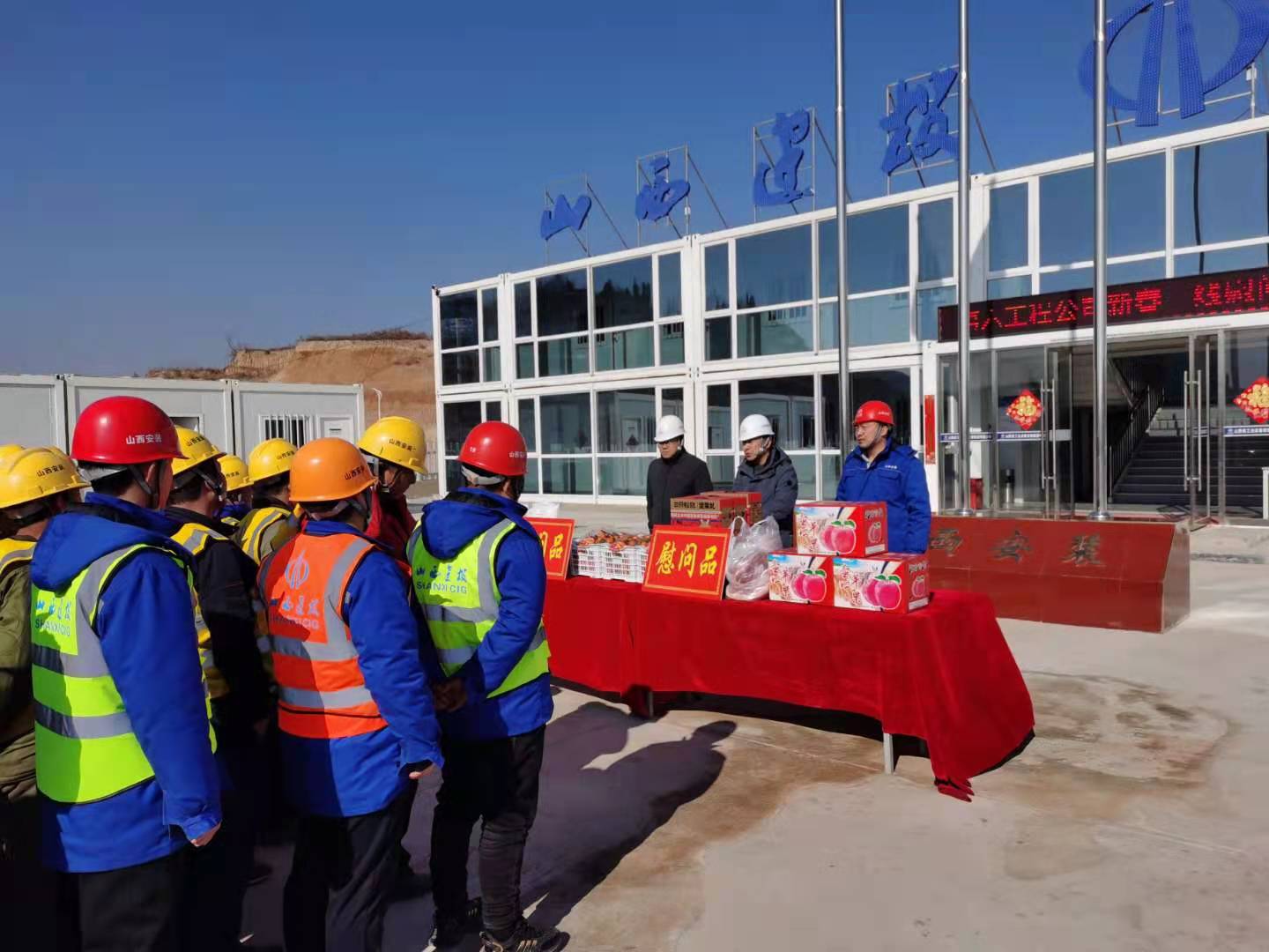 新春之际,温情过年。第六工程公司阳泉多氟多年产2万吨六氟磷酸锂项目因施工需要,项目职工放弃了团圆和假期,为项目守平安,为工地保生产。近日,第六工程公司领导班子深入项目一线开展暖春一线慰问活动并进行安全带班检查,了解项目部统筹疫情防控和安全生产、节日生活等相关安排。向依然坚守工作岗位的一线员工、农民工兄弟送上亲切的慰问和诚挚的节日祝福。
