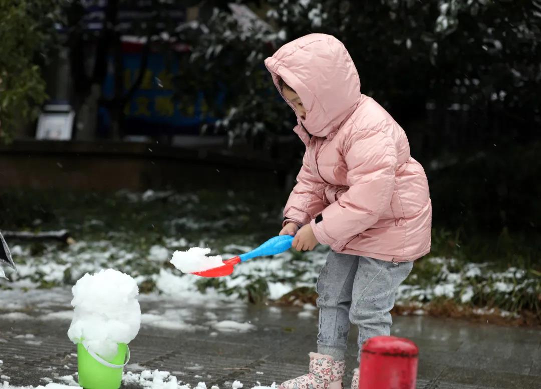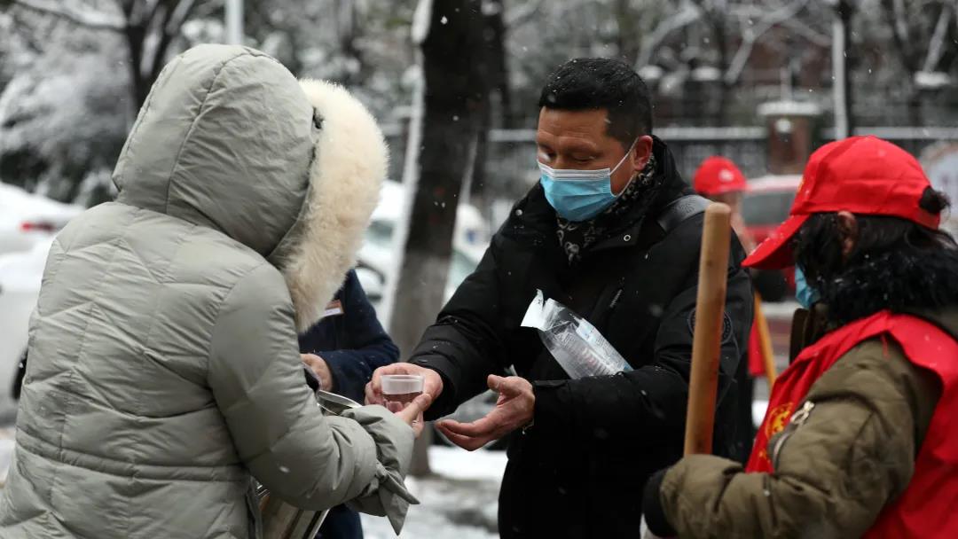 暖人心,“红马甲”成雪中汉阳最靓丽风景线。