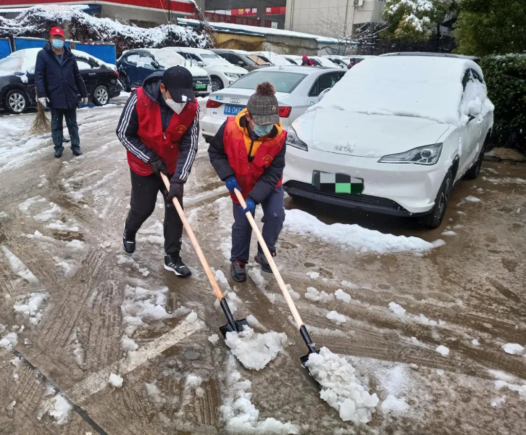 “早上起床看到积雪覆盖,担心小区居民出行不便,就想来跟大伙帮帮忙。”56岁的毛爱华,是晴川街华园社区巾帼志愿服务队的一员,在社区从事志愿服务活动超过3年,一大清早,她就赶来社区,要求参与铲雪出一份力,志愿者们的行动也赢得了居民的称赞,自发送来热水,给志愿者们暖手驱寒。