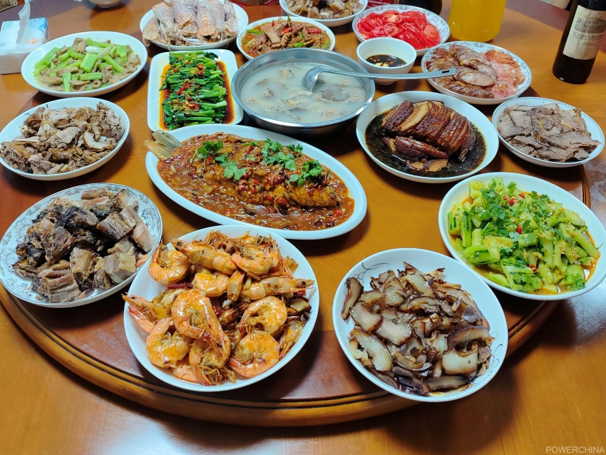 新春虎年,远离祖国的孟加拉国巴瑞萨电站项目年味十足,商务合同部韩帅和孟加拉籍员工哈斯夫一起,忙活着装点项目营地,挂起了红色的大灯笼。厨房里,几位南北大厨已经开始准备年夜饭的“大件”了。红烧狮子头、水煮肉片、清蒸石斑、麻辣海捕大虾……从除夕到初三,南辣北咸,西甜东酸,大火热灶,好不忙活。在海外,“年味儿”首先就来自这火红的春联和浓浓的饭香,各项目卯足了劲儿,在春节期间为职工带来“家乡的味道”,一桌丰盛的年夜饭把大家从工作岗位拉进“过年模式”。