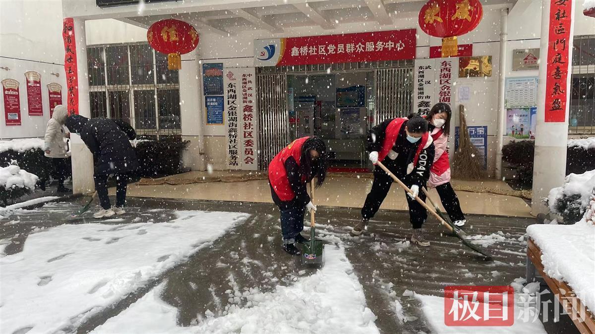 2月7日凌晨一场大雪飘然而至,为城市带来美丽雪景的同时,厚厚的积雪给道路交通和居民的出行带来了极大的不便和安全隐患,防止居民摔倒。位于武汉市东西湖区的鑫桥社区内,志愿者一大早就来到小区的门口进行铲雪除冰志愿服务行动,开辟出一条便民通道。