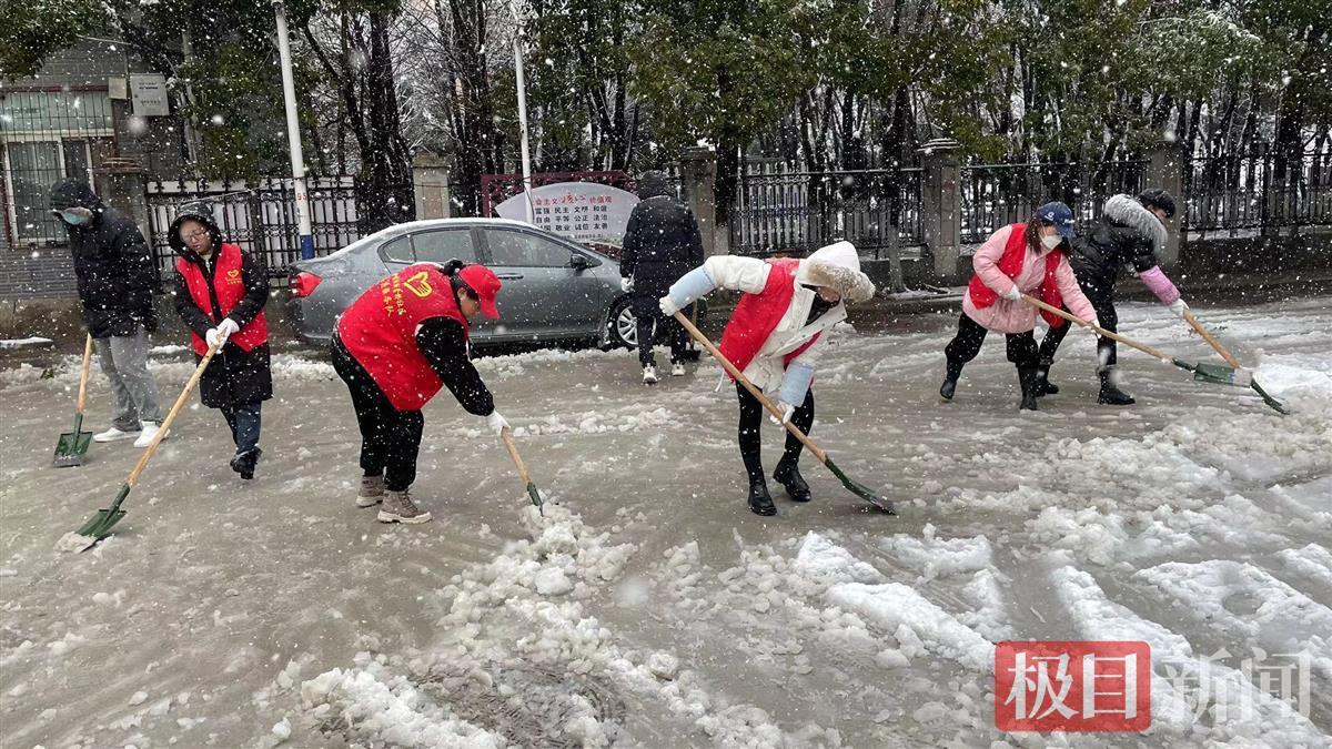 “早上,雪一直没有停,大家冒着雪、不畏严寒,纷纷拿起铁锹、扫帚等工具,清扫着路面上的积雪。”鑫桥社区的相关负责人介绍说,凌冽寒风中,不少志愿者的手都冻得通红,“有时候实在是冷的不行了,大家就搓搓手继续干。”由于是春节假期后的首个工作日,志愿者为了赶在早高峰前清除通道的积雪,丝毫不敢怠慢,“积雪不扫干净,走的人多了,更加容易滑到。”