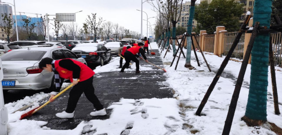 2月7日正值上班第一天,一场突如其来的降雪给广大居民群众的生产生活带来出行不便。严家渡社区迅速部署安排,在第一时间集结了包含下沉党员、文明单位及社区工作人员近30人的铲雪突击队,带着扫把、铁锹开展除冰铲雪工作,保证辖区内道路畅通和群众出行安全。