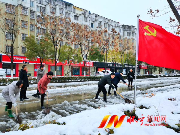 epe 2月7日,我县机关党员干部在街道除雪除冰。新年第一场大雪,我县迅速动员全县各级党组织和广大党员采取铲雪除冰、抢险救困、交通劝导、宣传引导等措施积极应对低温雨雪冰冻天气工作。目前已成立党员突击队463支,11000余名党员奋战在抗击低温雨雪冰冻工作第一线。檀志扬 汪善志 摄