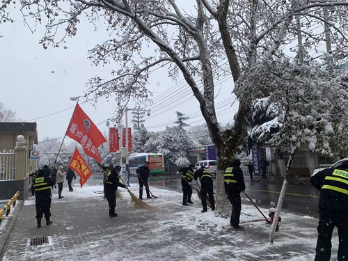 2月7日,我市普降大雪,区城管执法局立即启动铲冰除雪应急预案,合理调配人员物资,充分发挥党员先锋模范带头作用,组织城管、环卫和文明劝导员200余人,迅速投入到铲冰除雪保畅通任务中。