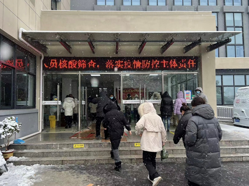 2月7日一早下着大雪,采样人员不到8点就已经在检测台前做好准备。此次核酸样本采集采取分批次分时段的模式,有效控制现场人数。采样点不仅设置了显眼的出入口标识和清晰的检测指引流程,还安排了工作人员提供指引、咨询等服务。采样过程中,受检人员接受体温检测与身份信息核对后,有序进行登记和采样,全程佩戴口罩,排队时保持1米以上安全距离,不交谈、不聚集。全天共采集返岗人员核酸样本1475份,均为阴性。