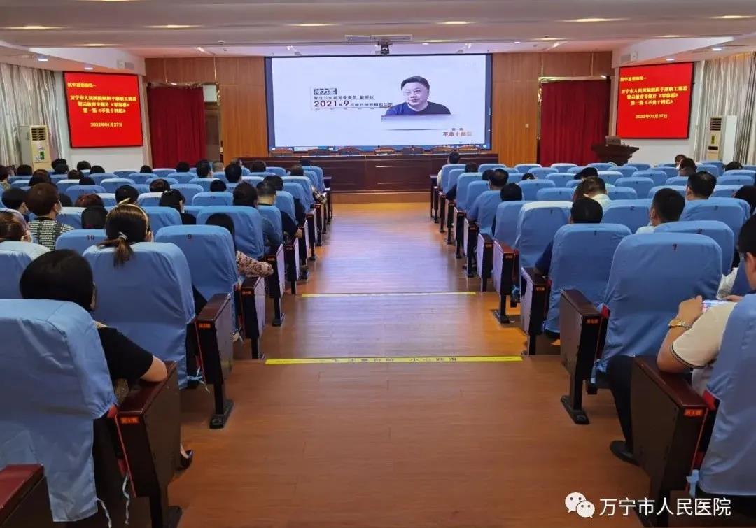 为进一步促进全院干部职工增强廉洁自律意识,打造风清气正的良好工作氛围,1月27日,我院将中央纪委国家监委宣传部与中央广播电视台联合摄制的警示教育电视专题片《零容忍》系列第一集《不负十四亿》,作为2022年开年警示教育第一课,通过鲜活的案例为党员干部敲响警钟,在新的一年起好步、开好头。会议由医院党委副书记、院长陈吴荣同志主持,医院领导班子成员、全体中层干部、全体党员参加。