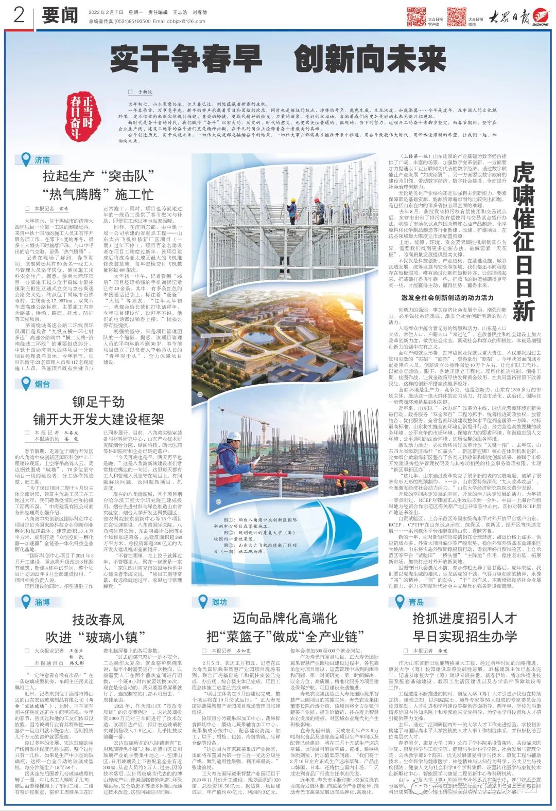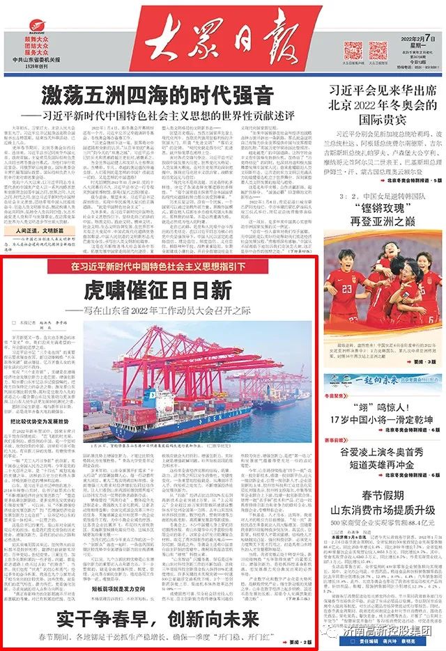 2月7日出版的大众日报刊发长篇通讯《虎啸催征日日新——写在山东省2022年工作动员大会召开之际》。请看全文——