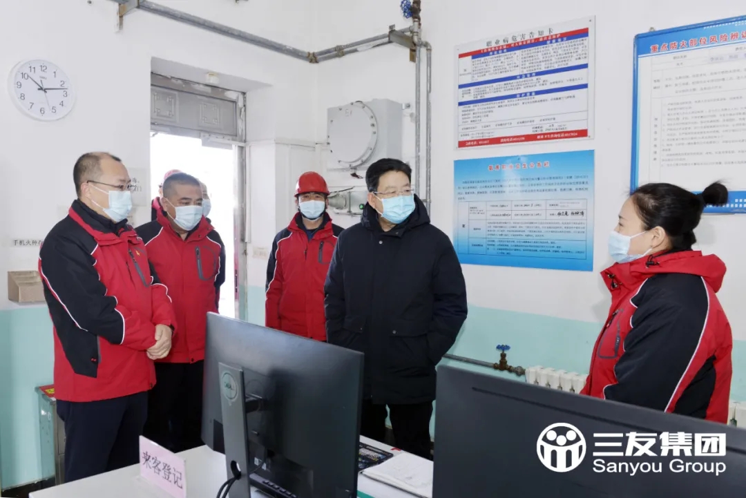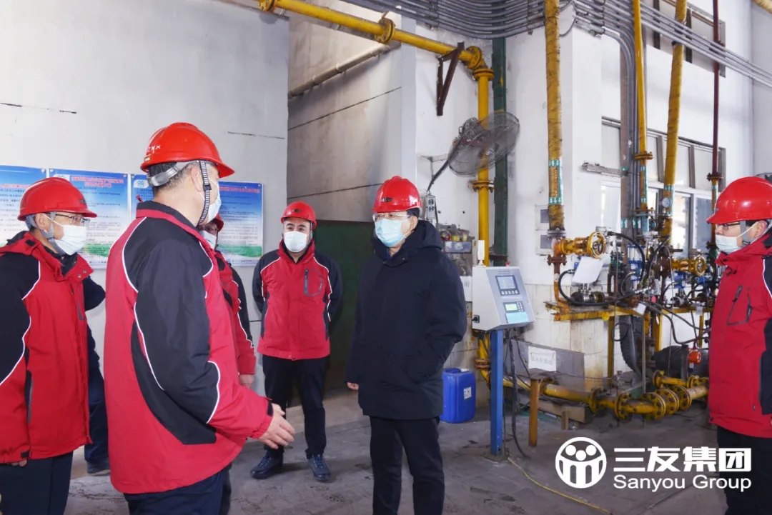 瑞雪迎春,节日的三友银装素裹、喜庆祥和。1月31日,农历腊月二十九,三友集团党委书记、董事长、总经理王春生深入重点工作岗位检查安全生产工作,为岗位职工送去新春祝福,并就有关工作提出具体要求。 上午,王春生来到氨库、液氯储存区、二硫化碳罐区、氯甲烷储罐区等重点岗位进行实地检查,并与坚守在岗位的干部职工一一握手,互致新春问候。看到他们舍小家顾大家,尽职尽责保安全保生产保稳定,王春生给予充分肯定。他指出,一线职工节期还要正常工作,很不容易很辛苦,各单位要把职工的利益放在首位,多措并举加大后期管理力度、提升服务质量水平,切实让职工感受到企业的温度,确保全体三友人都过上一个欢乐祥和的春节。