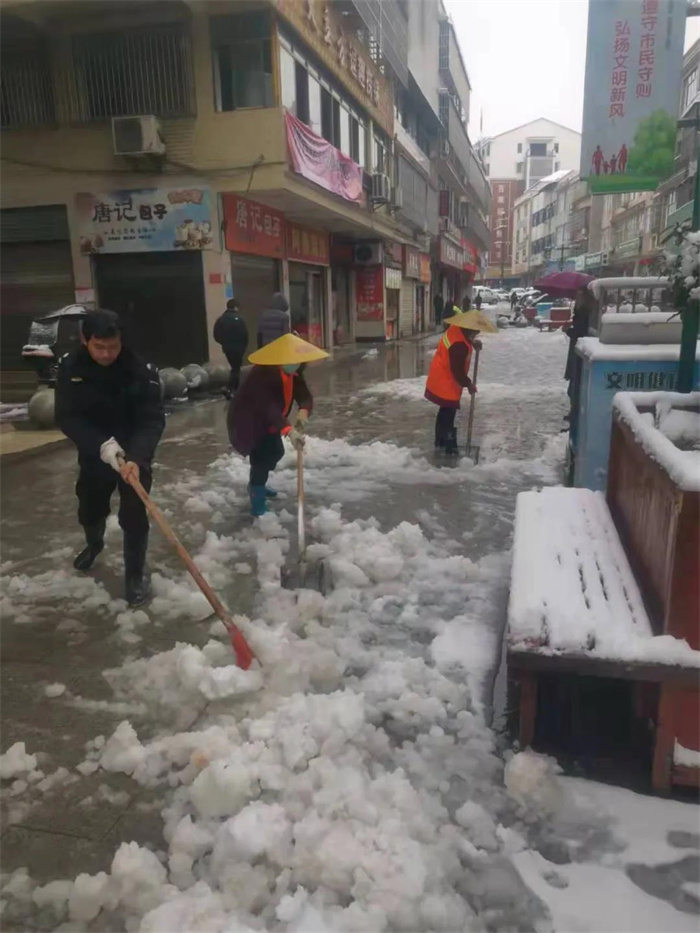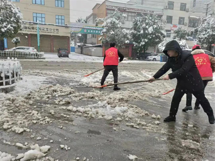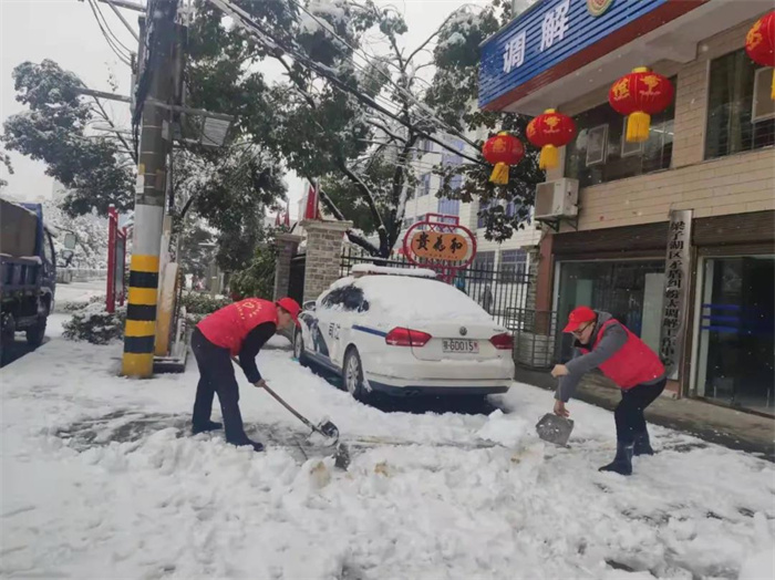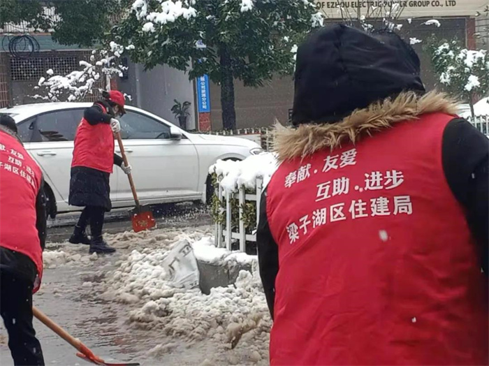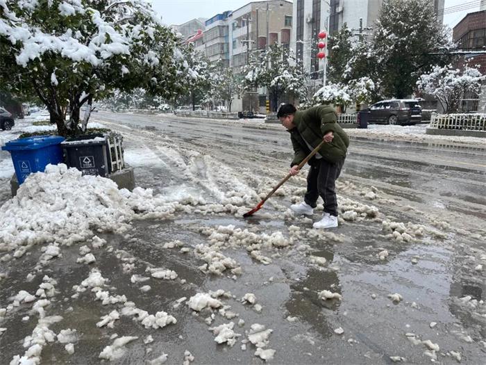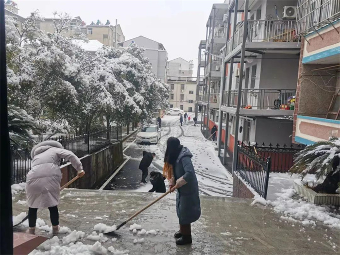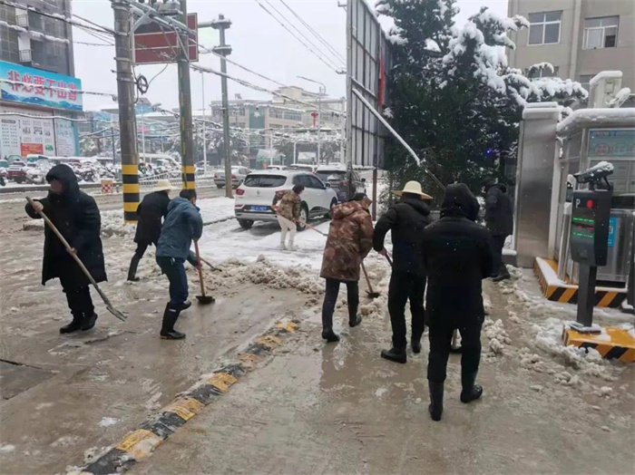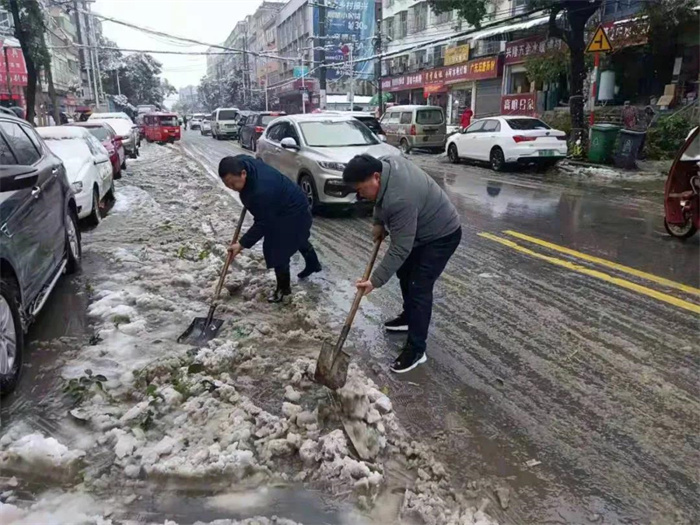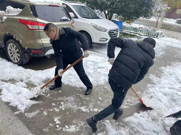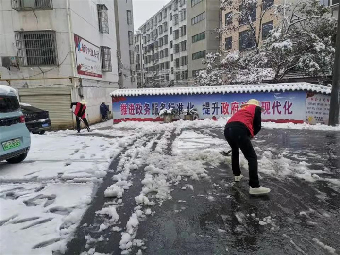 梧桐湖新区干部齐心协力,不停清扫布满积雪的院落、道路,为行人车辆开辟出一条安全通道,为人车出行提供安全保障,给寒冷的冬日增添了一丝温暖,也彰显了新区干群一心为民的担当与作为。