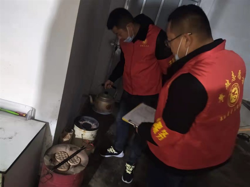 2月7日,祁家湾街连夜组织辖区志愿者除冰扫雪,并上门入户宣传预防一氧化碳中毒知识及防雪防滑知识。