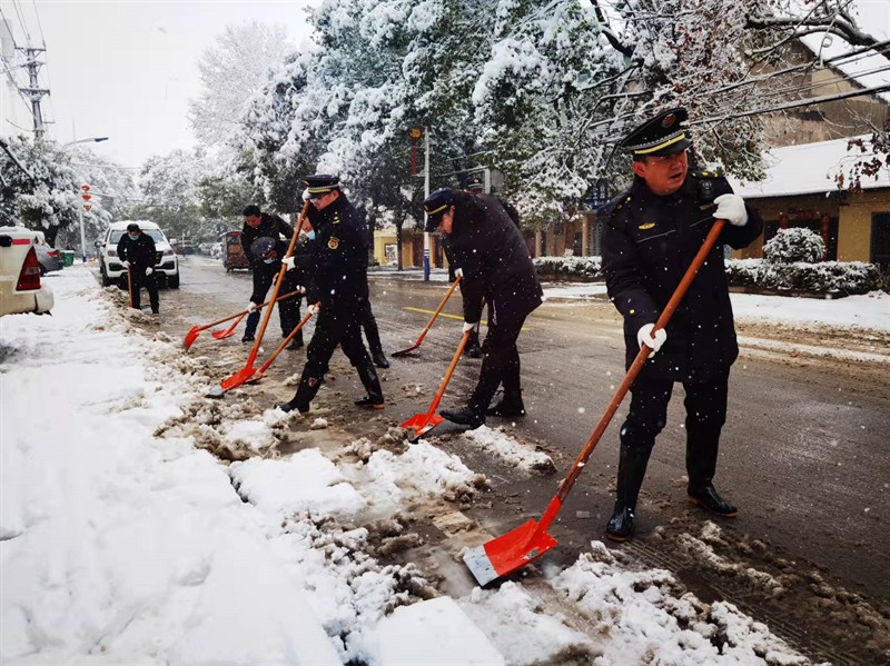 大雪压枝低!各街乡迅速行动,确保群众安全出行和平安度过大雪低温天