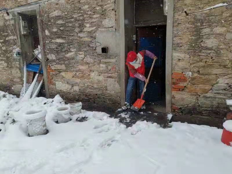 2月7日,六指街甘棠铺社区工作人员上门入户为独居老人、残疾人等重点人员门口除雪,并对他们进行出门安全,用火、用电、用气、取暖等安全宣传。