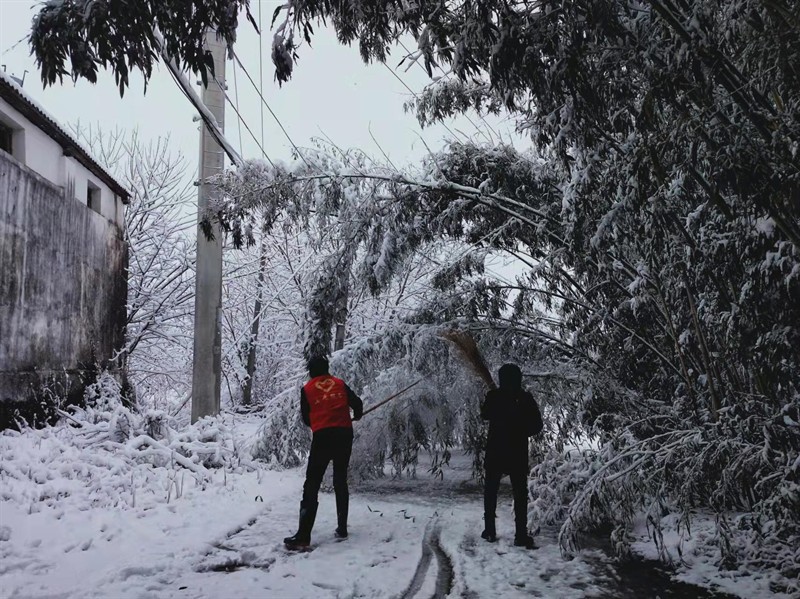 一夜之间 ,大雪压枝低!黄陂区各街乡立即行动,全力应付,组织党员干部及志愿者对辖区内主干道、村湾主要出行路进行除冰扫雪排险,确保出行畅通,对辖区危房进行排查,转移安置危房居住人员,并持续做好防一氧化碳中毒宣传工作,确保群众安全出行和平安度过大雪低温天。