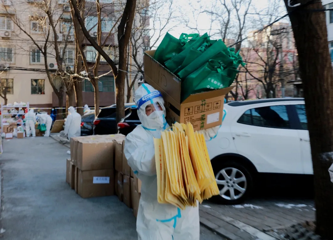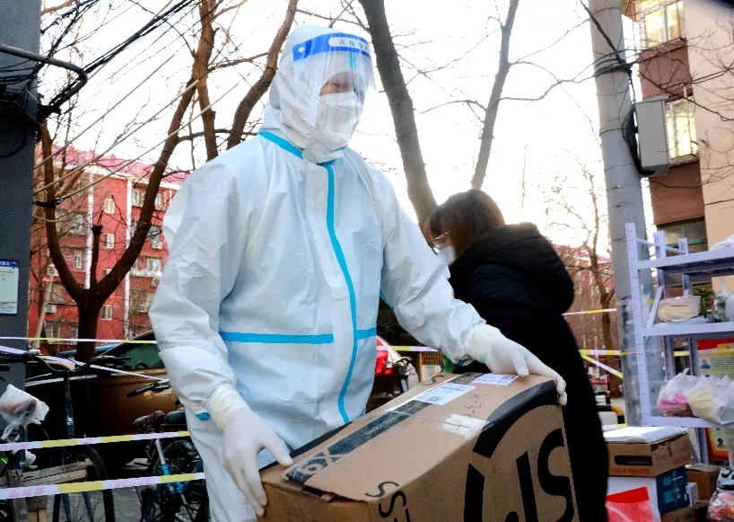 安贞街道的封控楼里,“心意”满满“扛”上楼