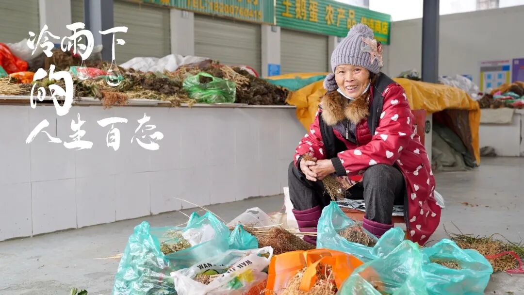 冷风夹杂着细雨,路上的行人神色匆匆。在县城农业小产品市场内,一位老奶奶正在整理草药。见到记者拍摄,这位老奶奶神色一顿,然后与记者聊起了天。她说,天气再冷,生活还是要继续,生活就像是天气,最冷的一天过去了,明天就该有个好天气了。