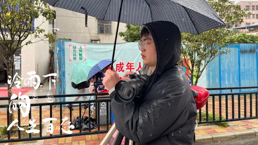 上午11点45分,实习记者小胡第一次外出拍摄。尽管衣物已被冷雨打湿,但他依然觉得工作起来感觉很开心。他说,既然选择了记者这个职业,那么就要用手中的镜头捕捉人生百态,用纸笔描绘龙门的时代变化,讲述龙门人的好故事。