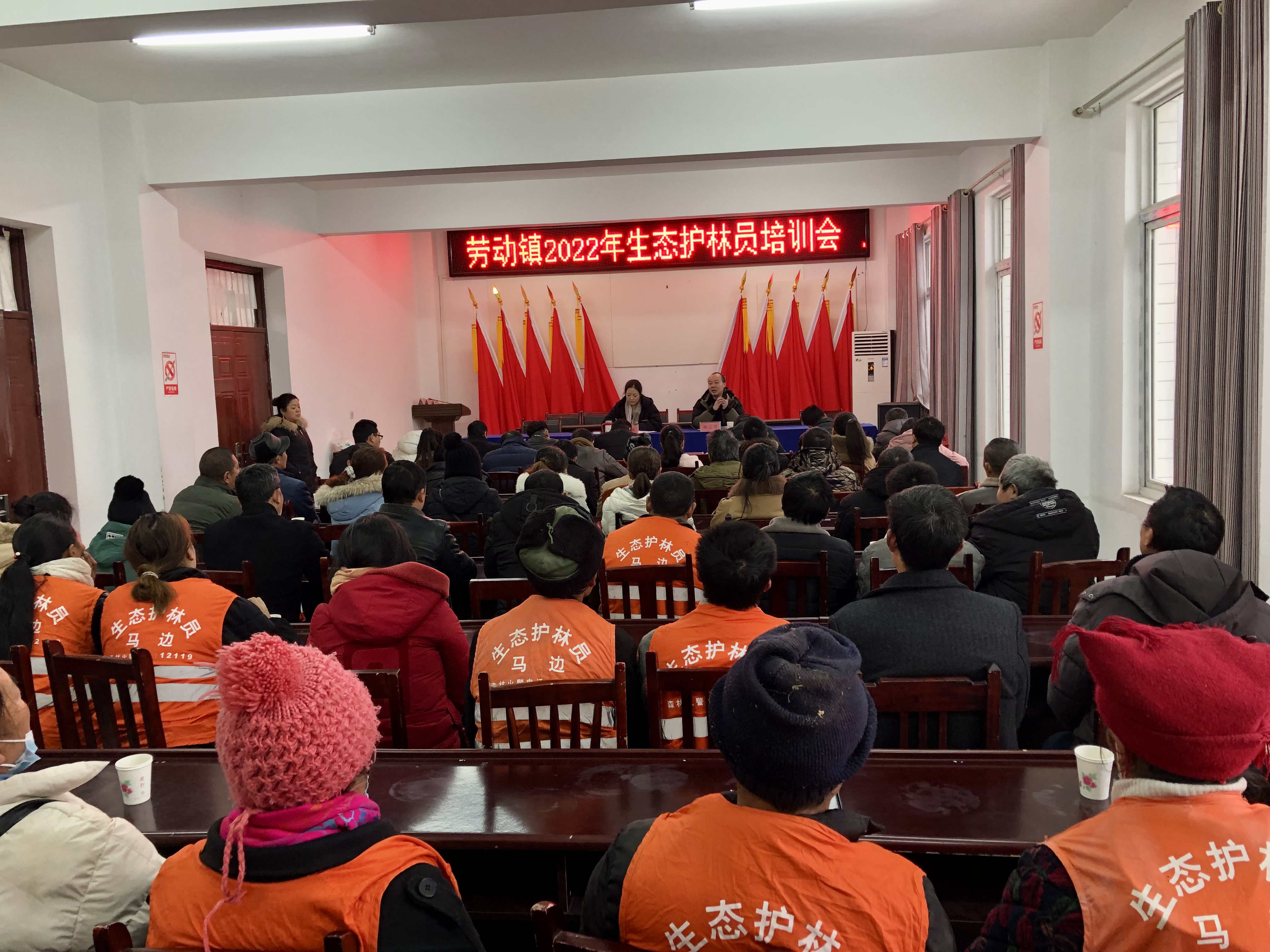 近日,劳动镇人民政府召开2022年度生态护林员培训会,各村支书、护林员参加会议。