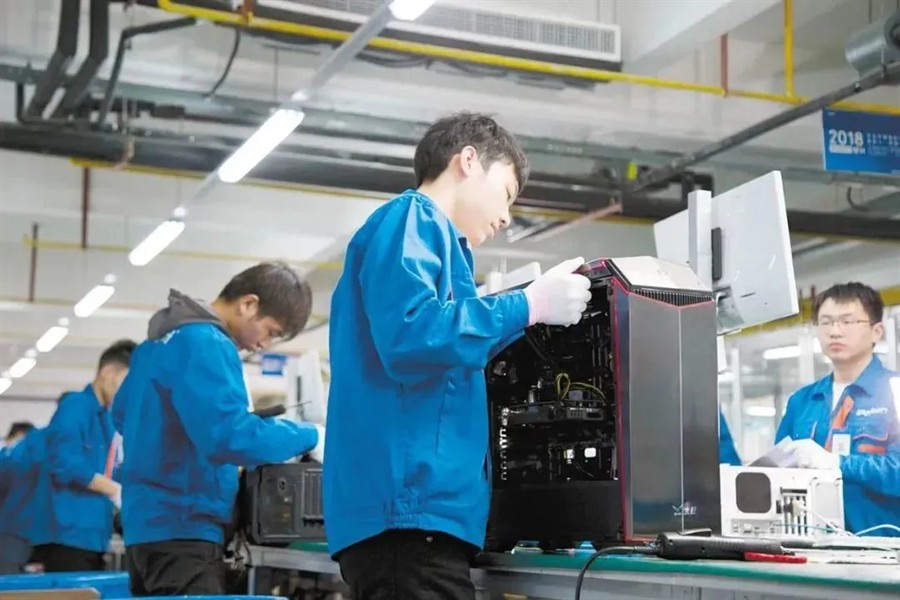 ▲ 攀升科技园内,工作人员正有序组装电脑。