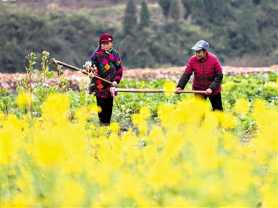 ? 2月21日,村民在贵州省铜仁市玉屏侗族自治县新店镇洞坪村的地里劳作。 当前正值春耕生产时节,各地农民抢抓农时,田间地头一派繁忙的春耕景象。 新华社发(胡攀学 摄)?