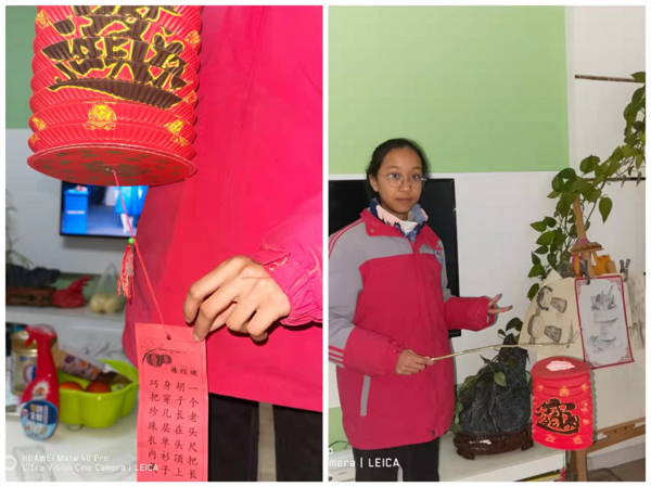 学校政史老师结合党史知识特别打造了党建主题灯谜,将党建知识融入到传统灯谜中,把中华传统民俗文化与党建基础知识教育相融合。各班主任把灯谜发到班级群里,鼓励学生积极参与。学生和家长面对灯谜思索、共同探讨,在思索中锻炼脑力,在交流中增进情感,群里欢声笑语,热闹非凡。这也让学生真正体会到了“闹元宵”的快乐。
