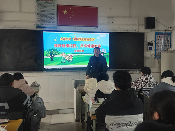 爱国卫生人人受益,疫情防控人人有责。为发扬爱国卫生运动优良传统,倡导校园健康生活方式,预防冬季传染病,持续巩固战“疫”成果,九湾中学于2月21日开展“爱国卫生专项活动”主题班会。