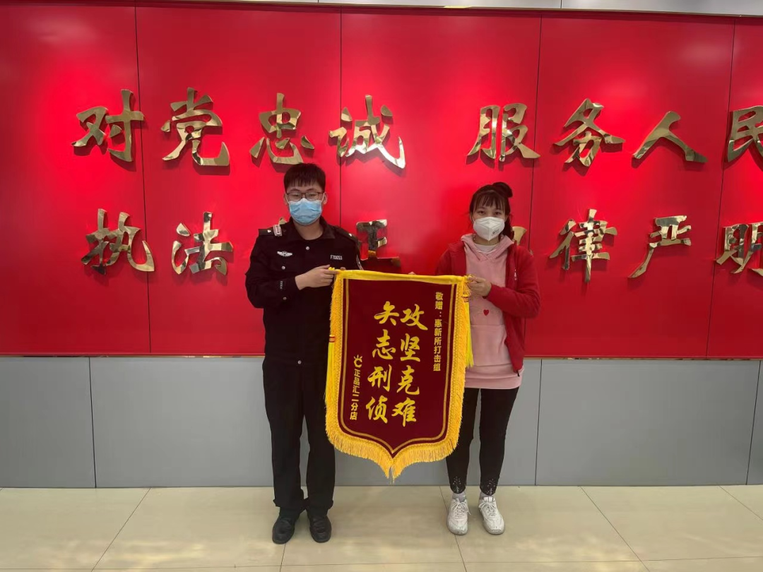2月18日下午14时许,仲恺公安惠新派出所值班大厅收到一位女士送来印有“攻坚克难,矢志刑侦”的锦旗送到值班警员手中。 2月上旬,仲恺公安惠新派出所接到辖区惠风六路某小区旁店铺老板报警求助称其店内电子烟、耳机等商品被盗。接警后民警立即赶往现场处置,展开侦办工作。通过对被盗现场勘察和反复走访查找嫌疑人活动线索,办案民警于2月中旬在辖区某出租房内抓获嫌疑人李某某(男,广东梅州籍)刘某某(男,广东梅州籍)。 经审讯,嫌疑人李某某,刘某某对其于2022年2月上旬在仲恺惠风六路某小区旁店铺内实施盗窃的行为供认不讳。据嫌疑人供述,二人是在闲逛至该店铺旁发现店门没锁紧,于是“临时起意”产生了偷盗想法,现案件正在进一步侦办中。