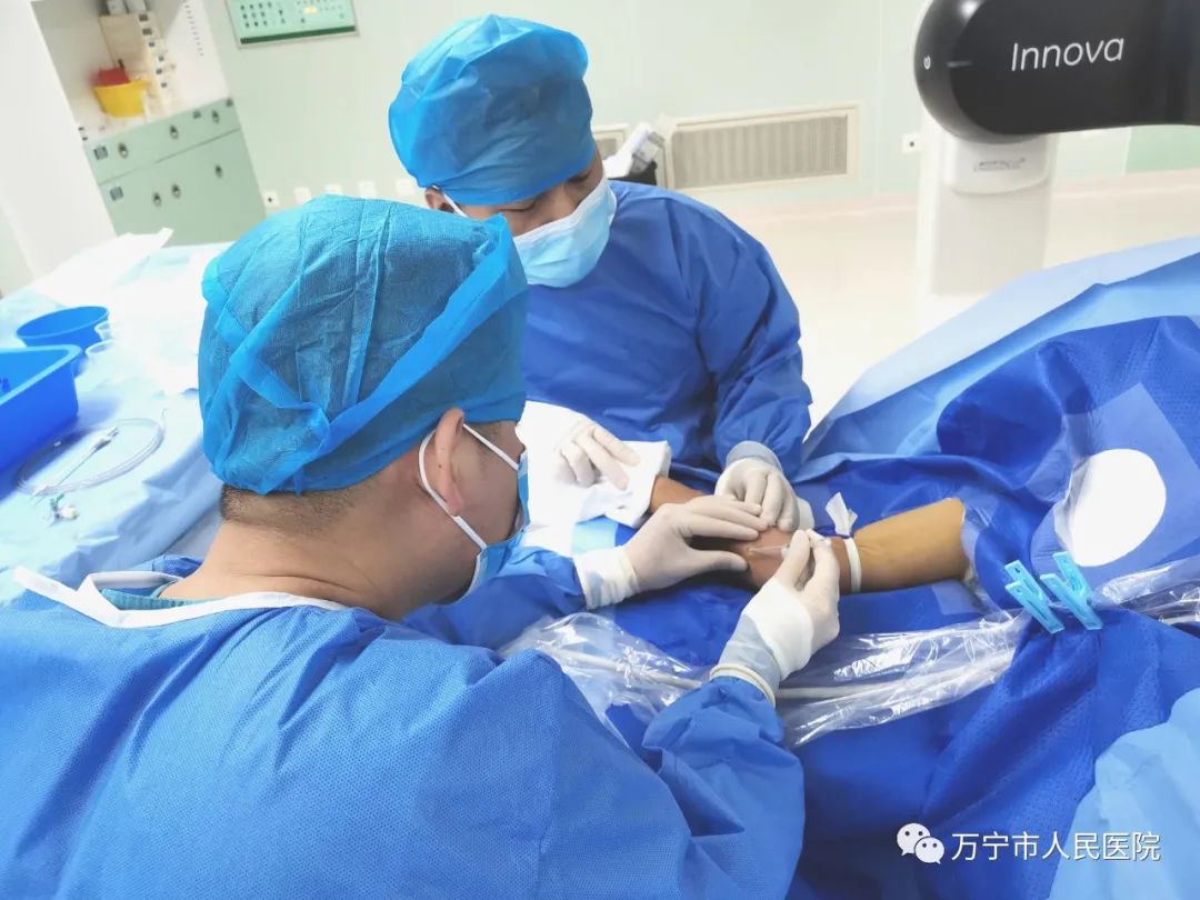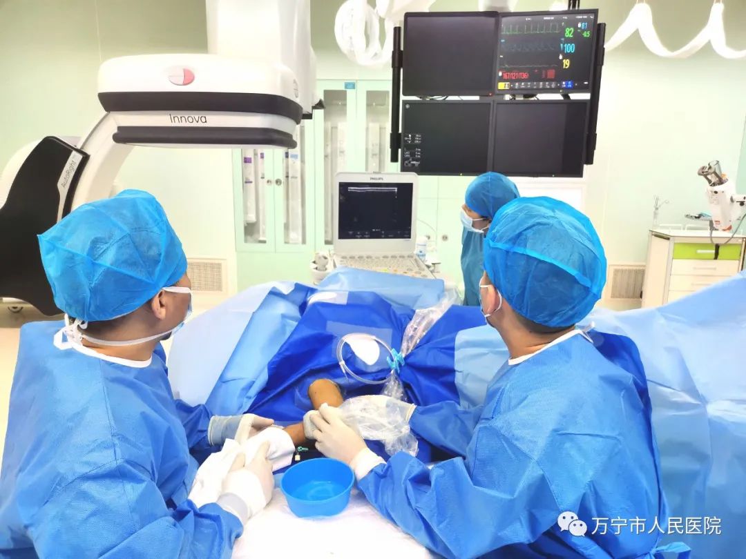 2022年1月15日,在海南省人民医院血液净化中心白亚飞副主任医师的指导下,我院肾内科许逢国医师、介入诊疗科杨剑护士的协助下,成功开展了万宁市人民医院首例经皮动静脉内瘘球囊扩张术。