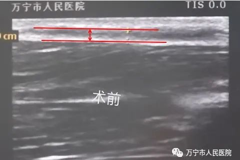 术前血管狭窄(内径0.18cm)—红色线条区间