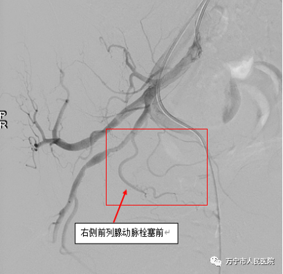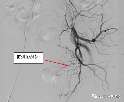右侧髂内动脉造影显示前列腺动脉