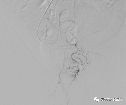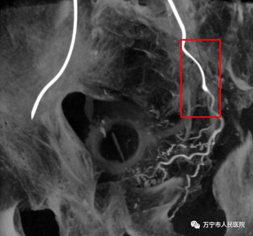 医生耐心寻找前列腺动脉开口,并用微导管超选择插管成功