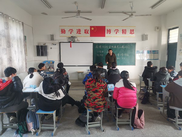 班会课上,班主任向同学们介绍了当前疫情实时动态,明确疫情防控的重要性。同时引导学生戴口罩、勤洗手、不扎堆、拒聚餐,自觉遵守学校常态化疫情防控各项管理规定。如果家人与自己有发烧现象,不要瞒报,一定要到正规医院检查就诊;不接触任何外来人员,如非必要,不出市跨县,坚持做好个人防护和健康检测。