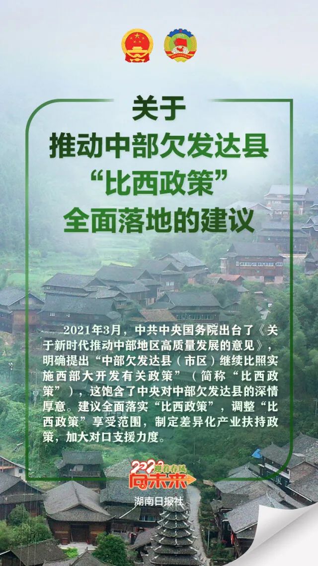 《关于推动中部欠发达县“比西政策”全面落地的建议》提出,继续比照实施并调整优化对“比西政策”十分必要。这既是缩小中部欠发达地区与西部地区差距、防止形成中部地区向西部地区过渡的“塌陷区”的客观需要,也是落实中央关于新时代推动中部高质量发展精神的现实需要。希望国家有关部门在四个方面提供支持。