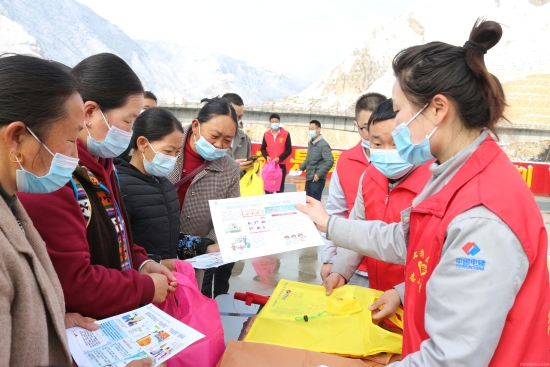 电建水电开发公司所在阿坝片区青年志愿者结合自身电力职业的技能特长,团结协作,分工有序,为小金县当地居民开展发放了环保购物袋,进行了白色垃圾清理、心肺复苏紧急救护法培训。并结合防洪度汛、安全用电等常识知识,为当地老百姓科普的用电安全。