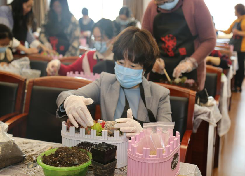 阳春三月,万象更新。“三八”国际妇女节到来之际,朝阳区审计局妇委会组织了一场以“栽种阳光,多彩人生”为主题的多肉植物种植活动,为全体女同志们带来节日的问候和美好的祝愿。在老师的讲解和指导下,大家手持小工具饶有兴趣地打造着一盆盆各具特色的“纯手工盆景”,培土、栽种、铺石、装饰……每个人都变身为巧手慧心的花匠,精心地呵护着眼前的小生命,释放着自己的想象力。 参与活动的女同志们纷纷表示,这次活动既锻炼了动手能力,又提高了艺术品位,还增强了绿色环保意识,是一次温暖、浪漫、丰富多彩的体验活动。