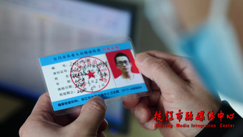 “好的,谢谢你们。没想到这么快,这么顺利就拿到我的健康证。”田继韬是宜昌海通食品公司的生产工人。过去为了体检,田继韬每年都需要在枝江城区和安福寺镇来回奔波,原因则是安福寺镇不具备健康证核发的体检条件。