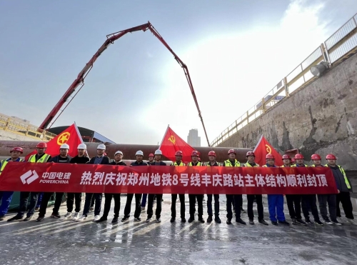 日前,郑州轨道8号线丰庆路站主体结构顺利封顶,标志着公司承建的郑州轨道8号线01标11座车站全部封顶。