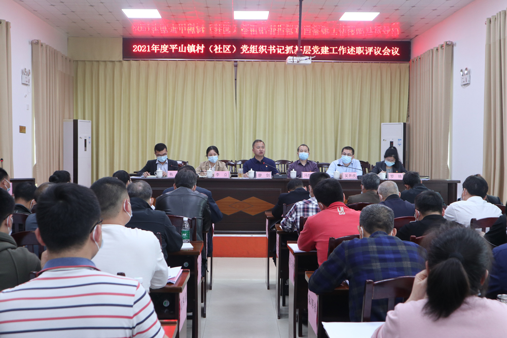 3月16日,平山镇召开2021年度村(社区)党组织书记抓基层党建和落实党风廉政建设主体责任述职评议会议,部分镇党委领导班子成员、各村(社区)党总支部书记、镇直各党支部书记等41人参加会议。县纪委、县委组织部指导组人员到会指导。