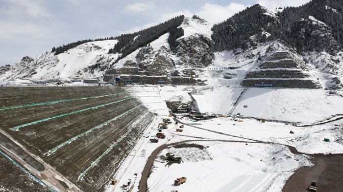 作为新疆首座抽水蓄能电站项目,上水库大坝为混凝土面板堆石坝,混凝土面板坝坝顶高程2275米,坝顶宽10米,防浪墙顶高程2276.2米,最大坝高133米,坝顶长度414.5米。在大坝填筑过程中,由于施工开挖、填筑量大,项目部面临土石方动态平衡管理的难题,并且高海拔地区冬季时间长,工地频发大雪、浓雾等极端天气,特别是疫情爆发,一时间人员、设备、材料进场困难,疫情多次反复,对工程施工造成严重影响。