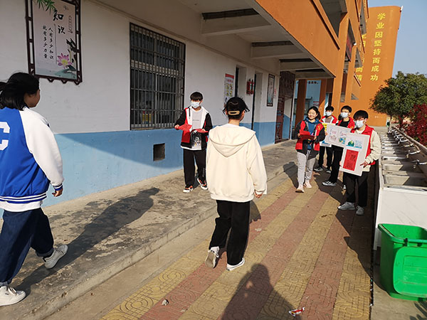 宣传周九湾中学利用各种宣传平台,进行活动主题宣传。防疫期间,使用QQ群和微信群,宣传节约用水的知识,增强师生和家长的爱护水资源的意识,从而达到节约用水的目的。学校组织宣传员在校园进行宣传,向师生宣传了关于水资源节约、保护的知识,以及生活中节约用水的好方法,倡导师生养成节约用水的好习惯。
