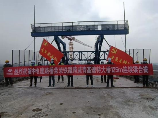 莱荣铁路跨威青高速特大桥提前20天合龙
